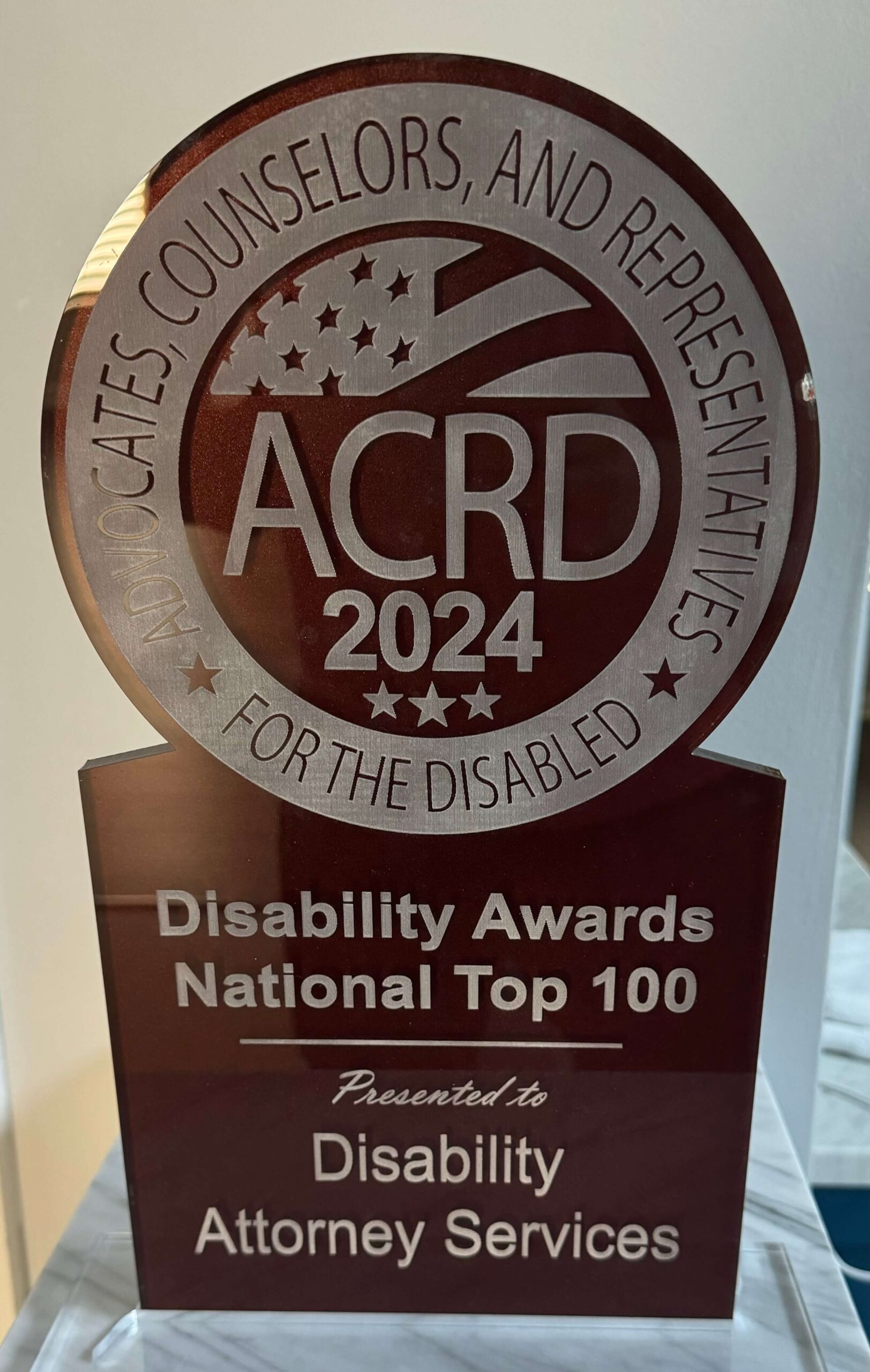 Disability Attorney Services has been recognized as one of the National Top 100 for 2024 by Advocates, Counselors, and Representatives for the Disabled (ACRD). This prestigious award highlights our unwavering commitment to providing exceptional legal services and advocacy for individuals with disabilities.